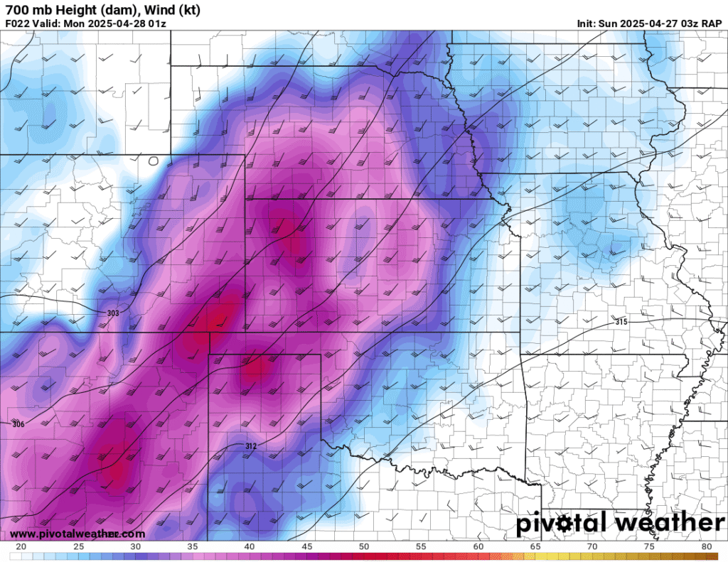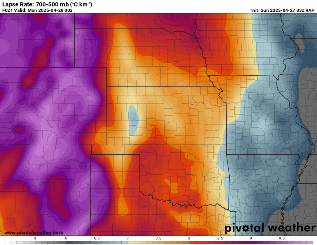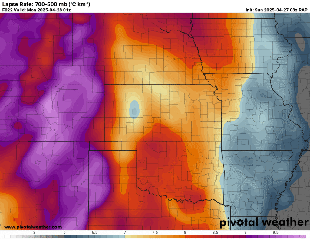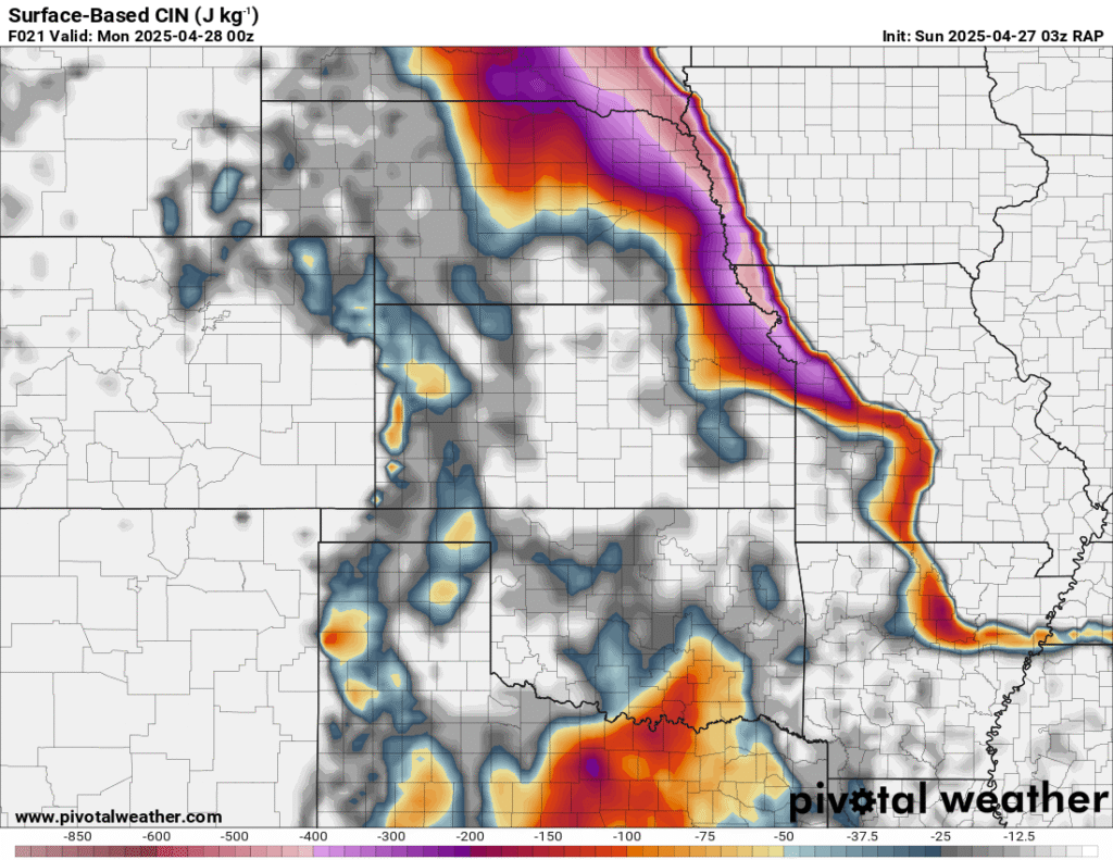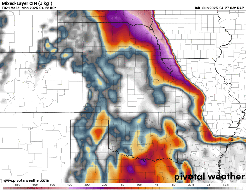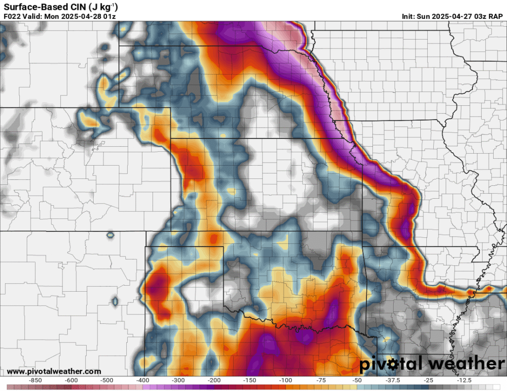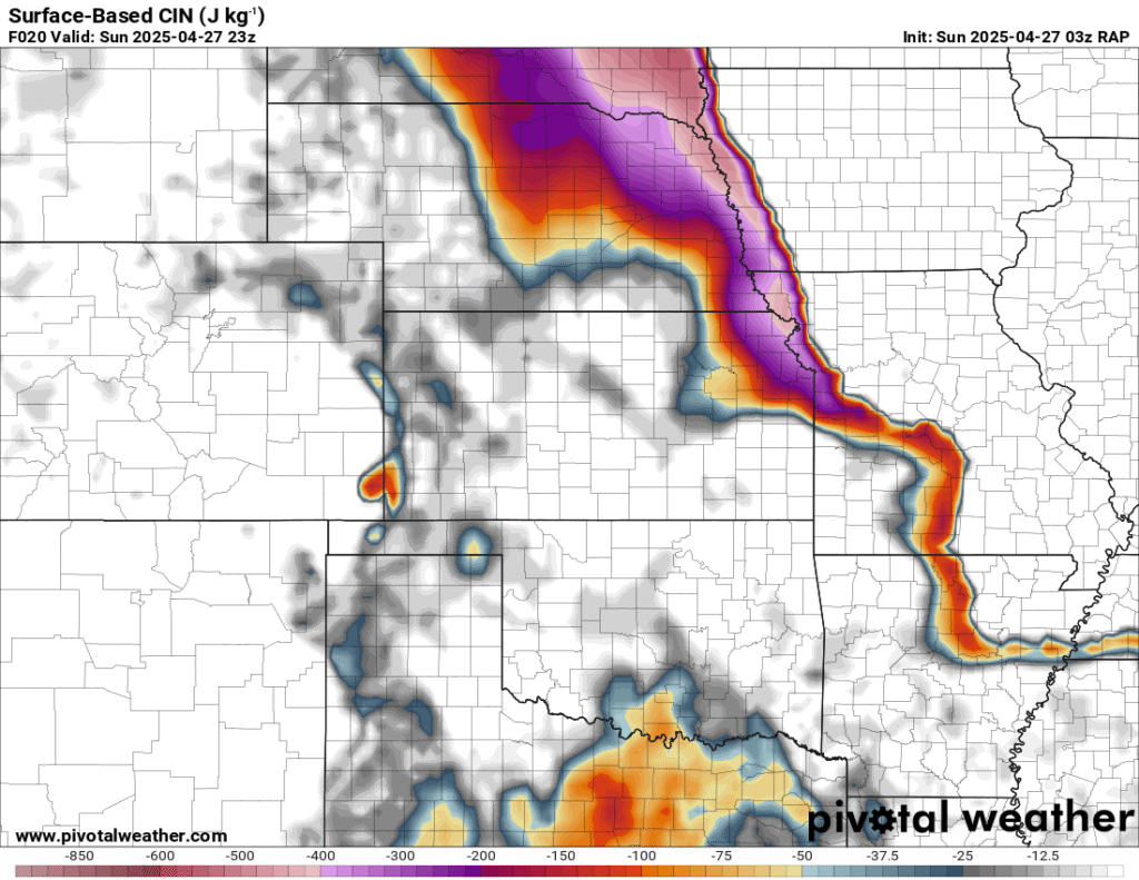 I was specifically impressed with temperatures at 700mb in the RAP runs, showing an area along the dryline in Western Kansas and Nebraska that would be sufficiently cool for convective initiation, or so I thought.