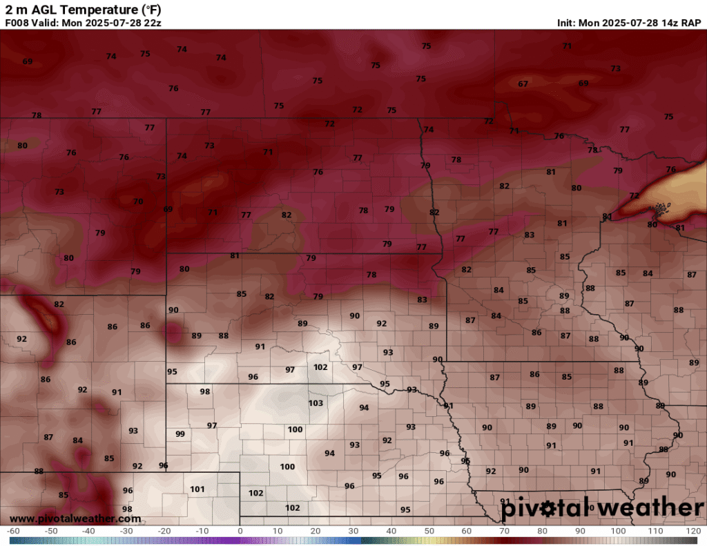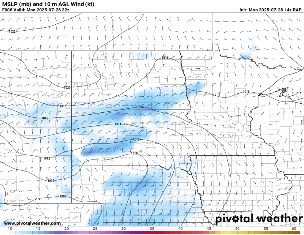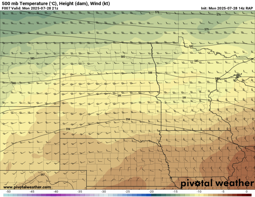 Between visiting the National Monument and work obligations, I became distracted. When I started moving west, the idea was to go to the Huron area or a little further west and/or north. Convective Initiation further southwest put me out of position big time. To compound the issue, I headed west out of Pipestone and continued through Madison and then tried to go through Salem. Road construction including a 15 minute wait for a pilot car and another long detour around Salem and back to I-90 cost me a lot of time.