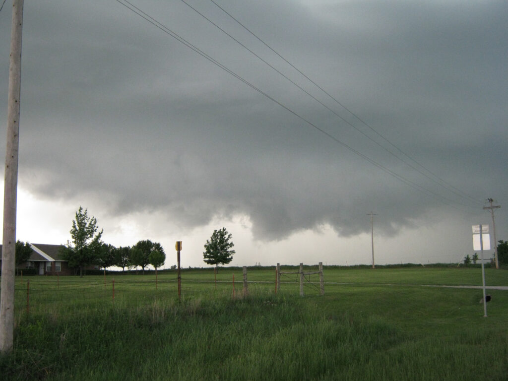 Once we got east of Purcell, we headed to 120th ave, which had a great place to observe the storm. Again, a major lowering and some rotation. The rotation was tightening up, but still couldn’t get it done. Some more locals were out ‘observing’ the storm trying to see a tornado – I guess it’s an Oklahoma pastime.