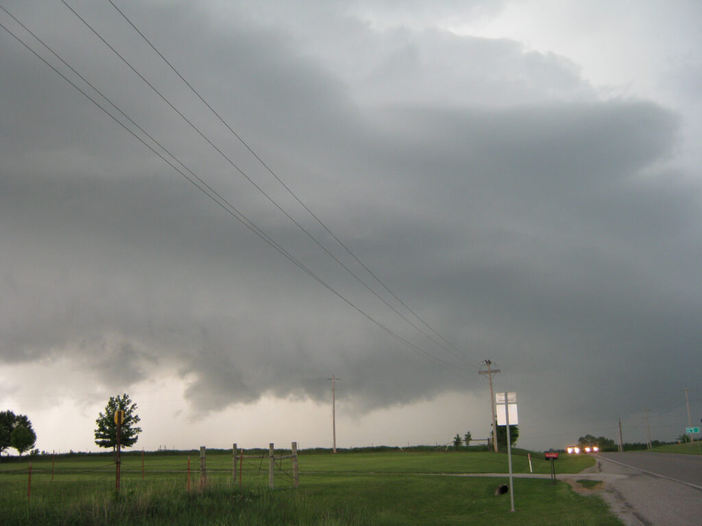We stopped at the Intersection of Highway 74 and 24, and observed for a while longer. A very distinct lowering went across the road to the north of us. It was rotating, but ever so slowly.