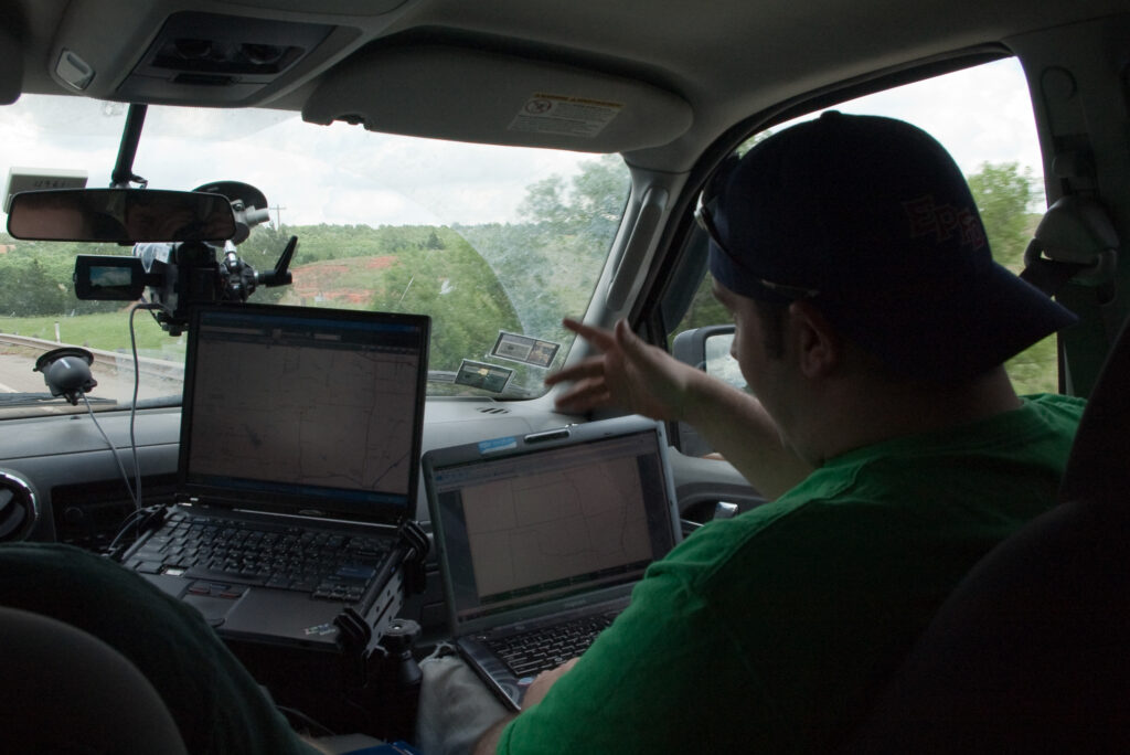 Storms fired to our north first, but as Adam said, they “looked fuzzy”, and disorganized so we decided to not go after them. It was later on we wished we had, when tornado reports started coming in from what looked like rain showers on the radar.