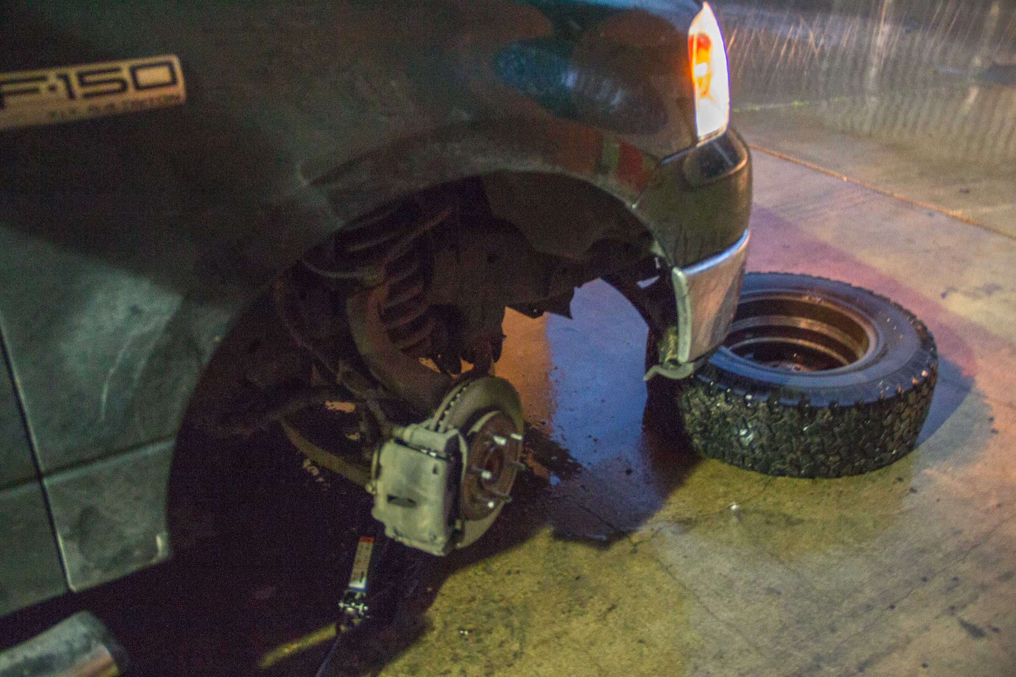 I decided to try and limp to Hastings where I could possibly find an auto parts store open the next day. Luckily I ran into Steve Polley, Jesse Risley, Scott Bennett, Corey Sloan and Aaron Pippin and we were able to at least to band-aid my truck by moving the top caliper bolt to the bottom and rigging up some cables to help hold the caliper down so it didn’t chunk up into the wheel like it had been.