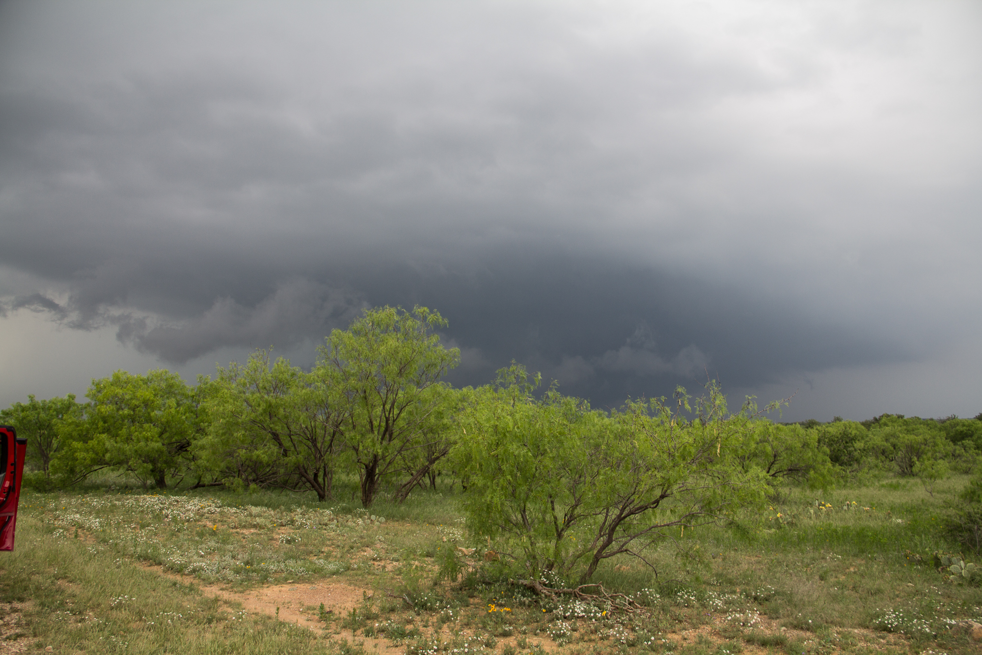 This was unfortunate timing for us, as storms started firing up way down along I-20 when we were still in Oklahoma, and there was really no way we’d get to them in time, so we picked the storm near Throckmorton, as that looked the best at the time.