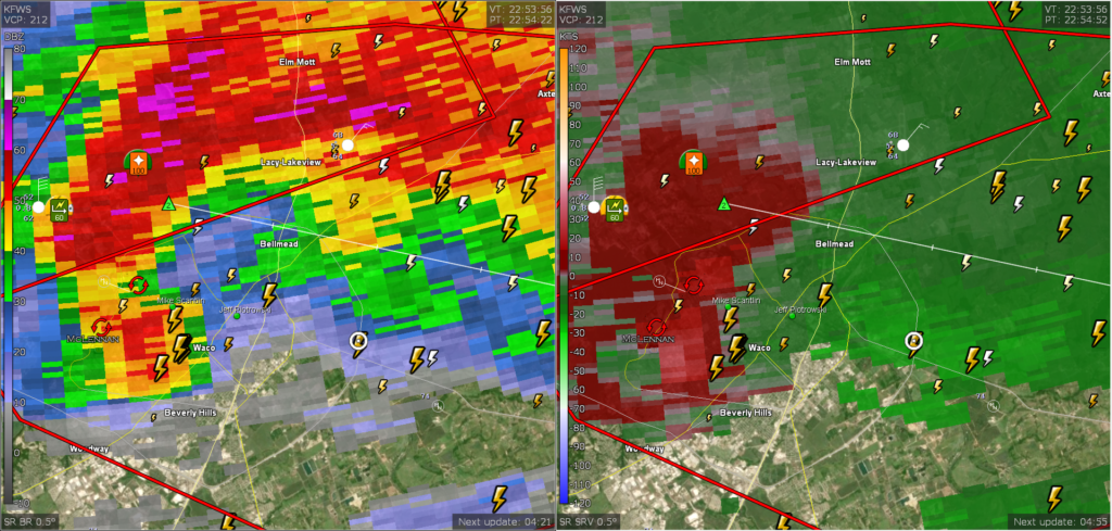 I would end up on an intense supercell near Waco trying to stay out of the hail core. With reports of baseball and softball sized hail, I kept my distance and glass intact.