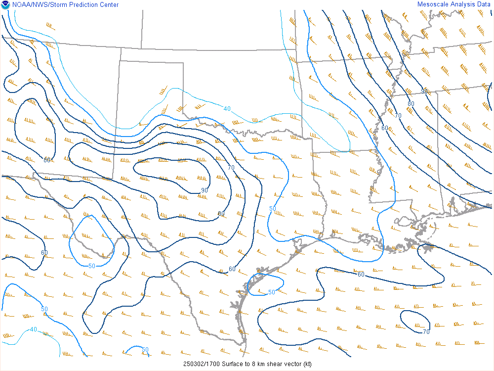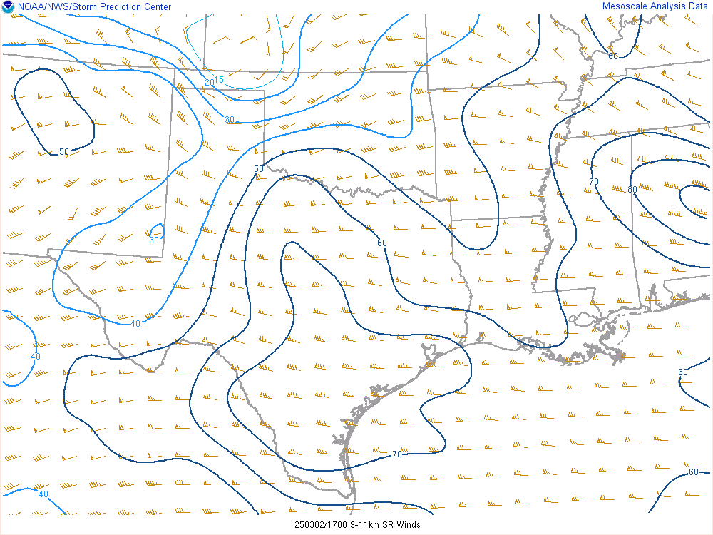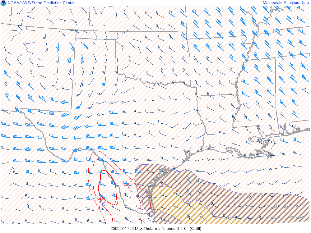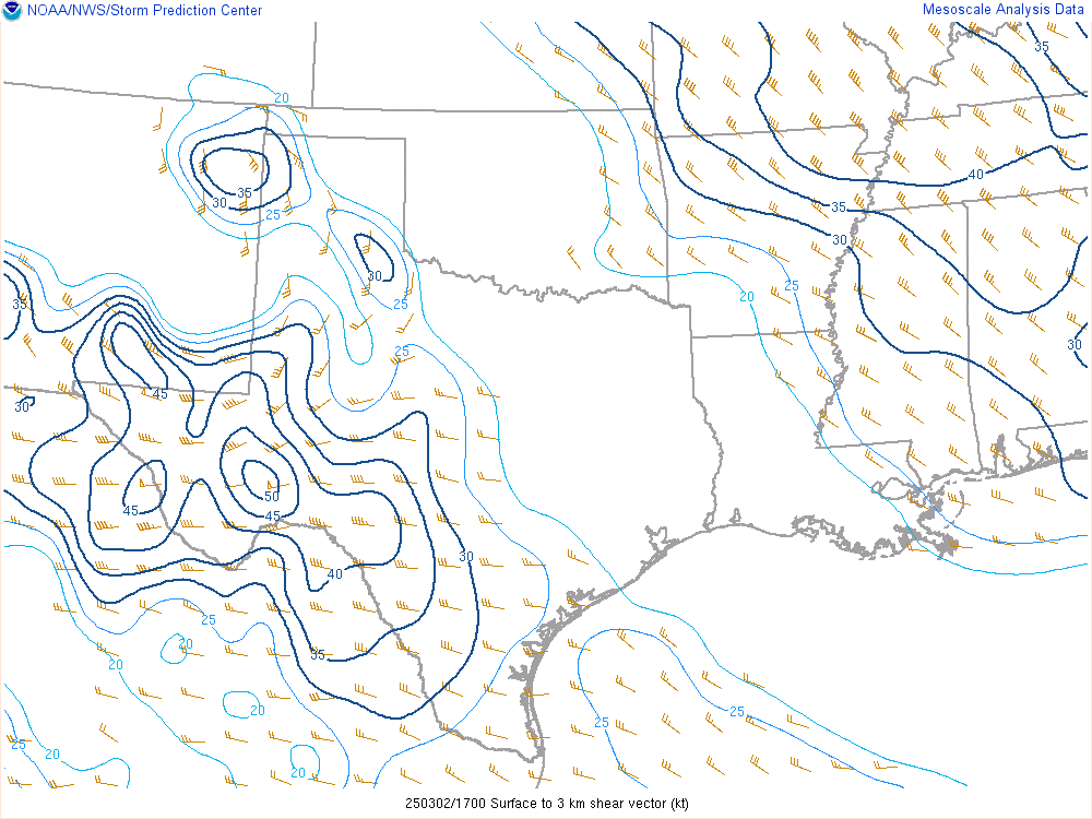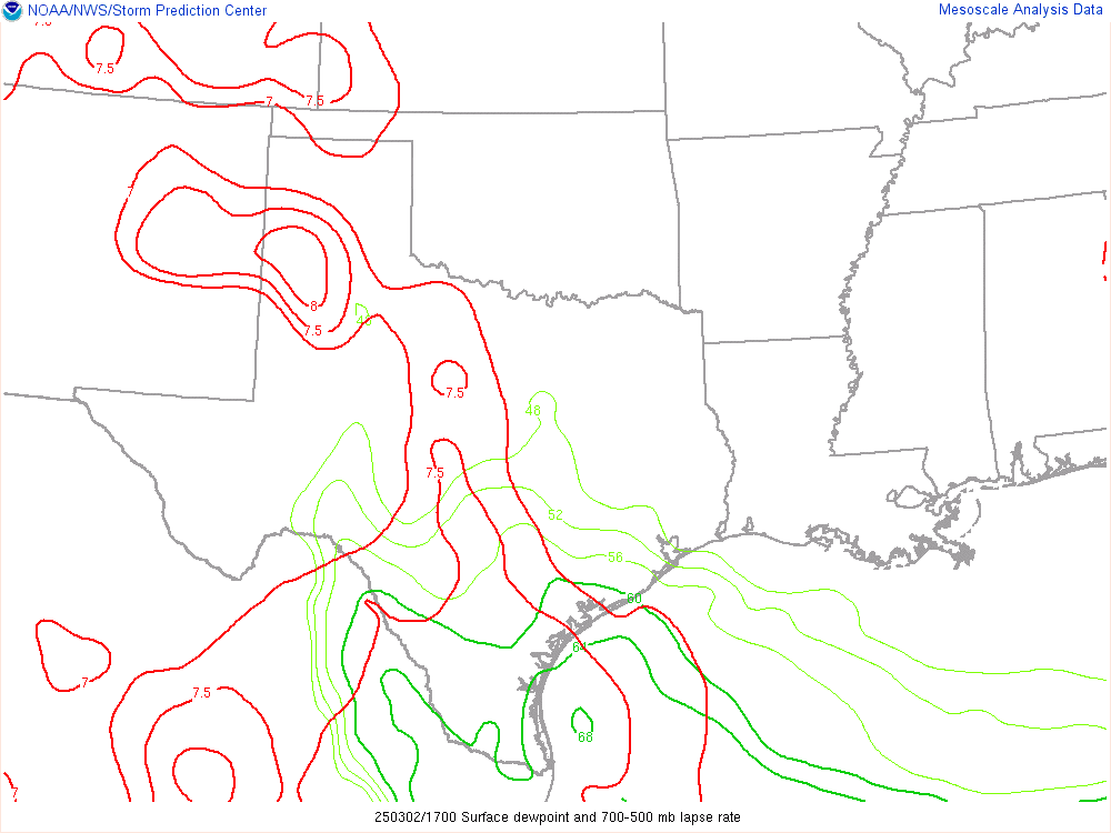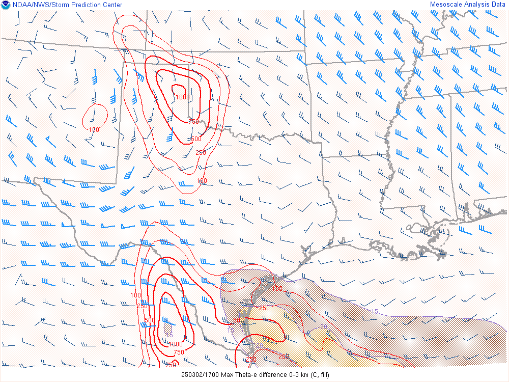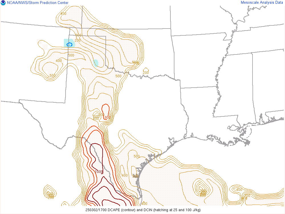 With an upper level low crashing into the panhandle, it would encounter mildly moist environment with dewpoints in the low 50s. Hail would definitely be the main threat, but storms would have some spin.