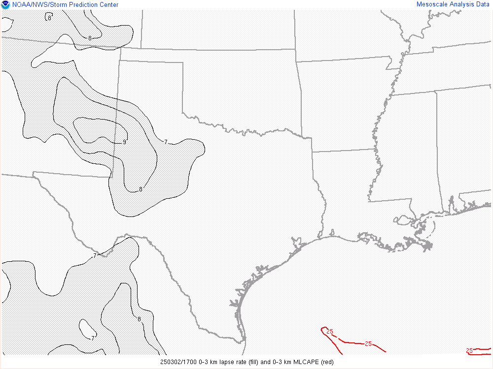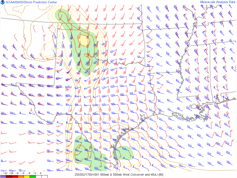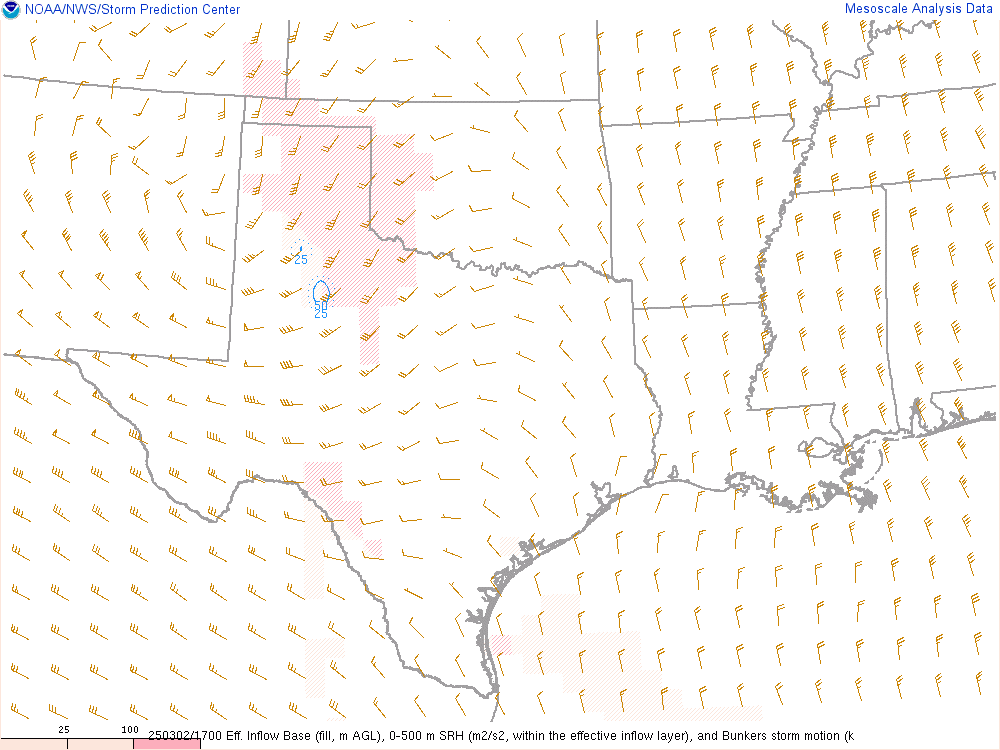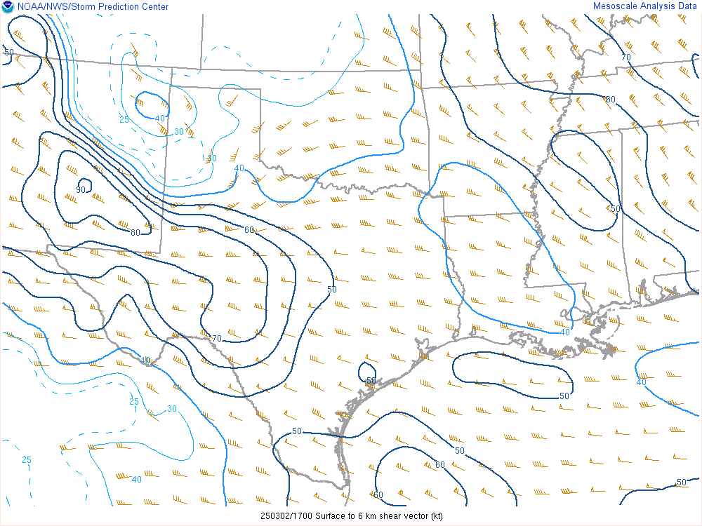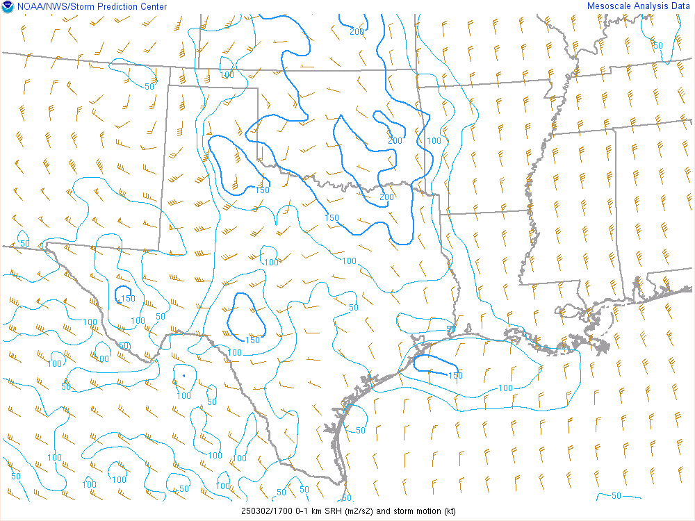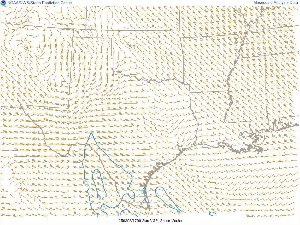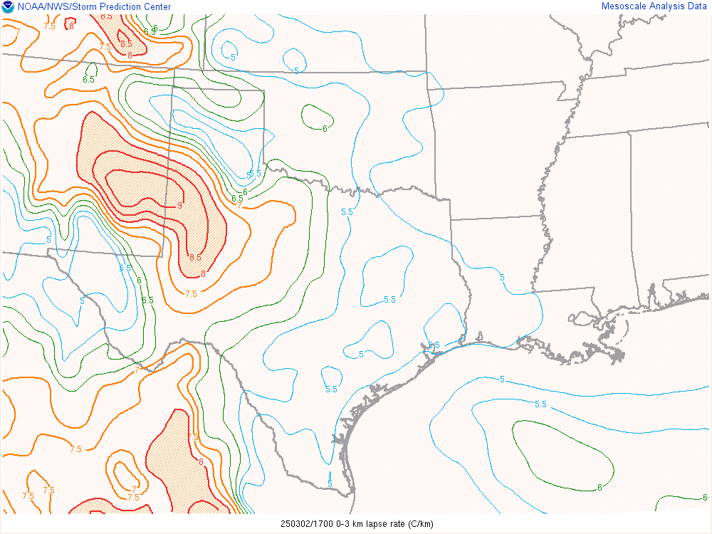 With an upper level low crashing into the panhandle, it would encounter mildly moist environment with dewpoints in the low 50s. Hail would definitely be the main threat, but storms would have some spin.