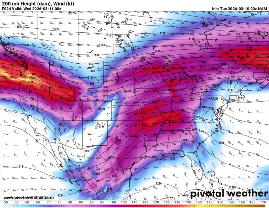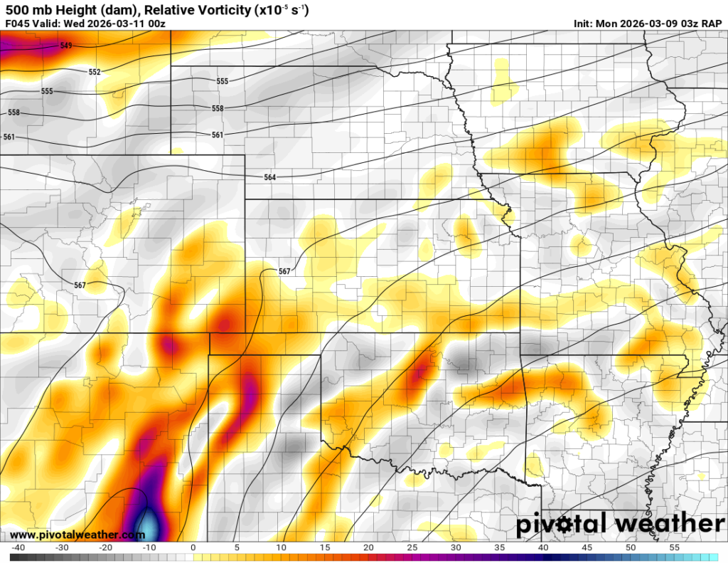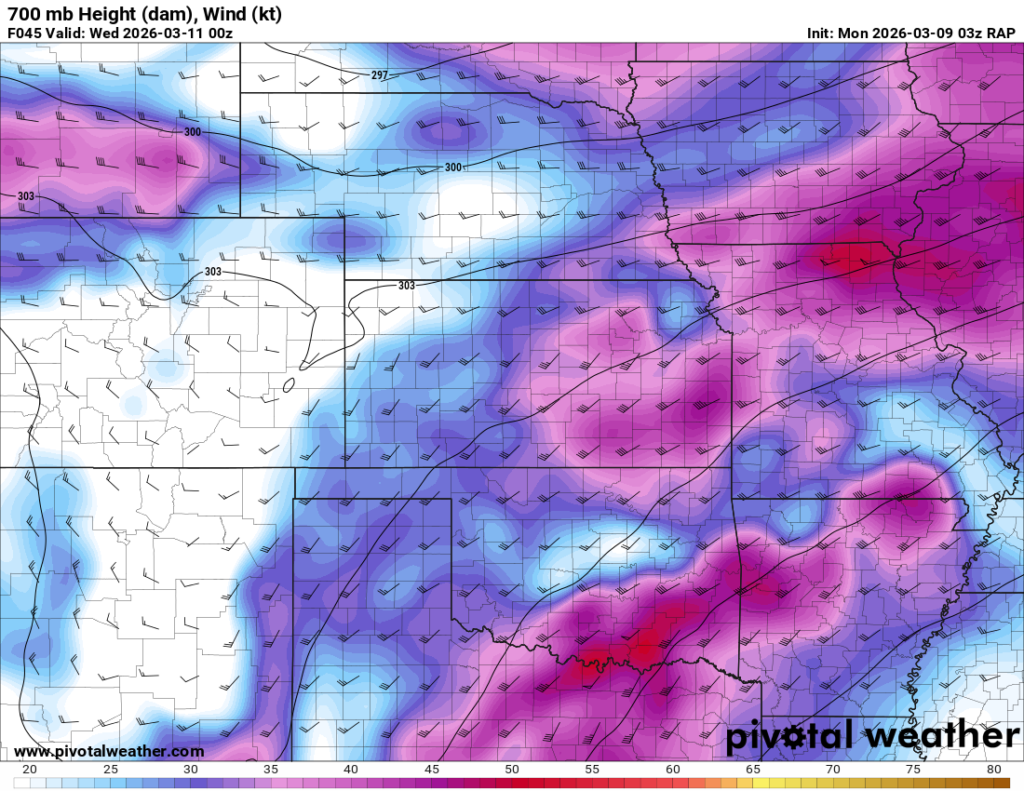 Looking out 2 full days, the evening RAP run on Saturday night March 7th (03Z on March 8) was showing the possibility of supercells in Central and Southern Oklahoma. With the main jet stream staying north, a cut off low over Northern Mexico and ejecting into Texas/Oklahoma in the late afternoon and evening hours. With the success I had with cutoff lows in 2012, I couldn’t ignore this system in the Southern Plains.