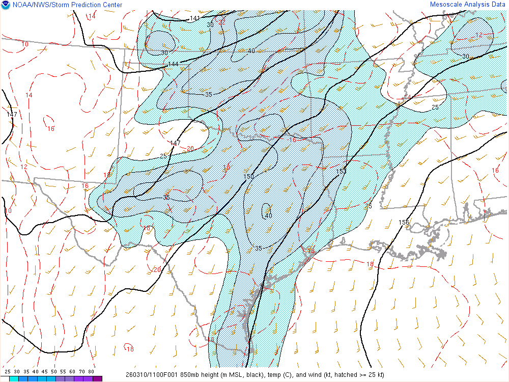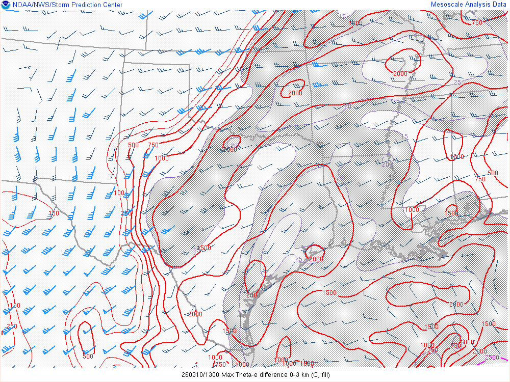 Moisture was very high for March. Dewpoints in the mid 60s were in place at 8am across the eastern 1/2 of Oklahoma.