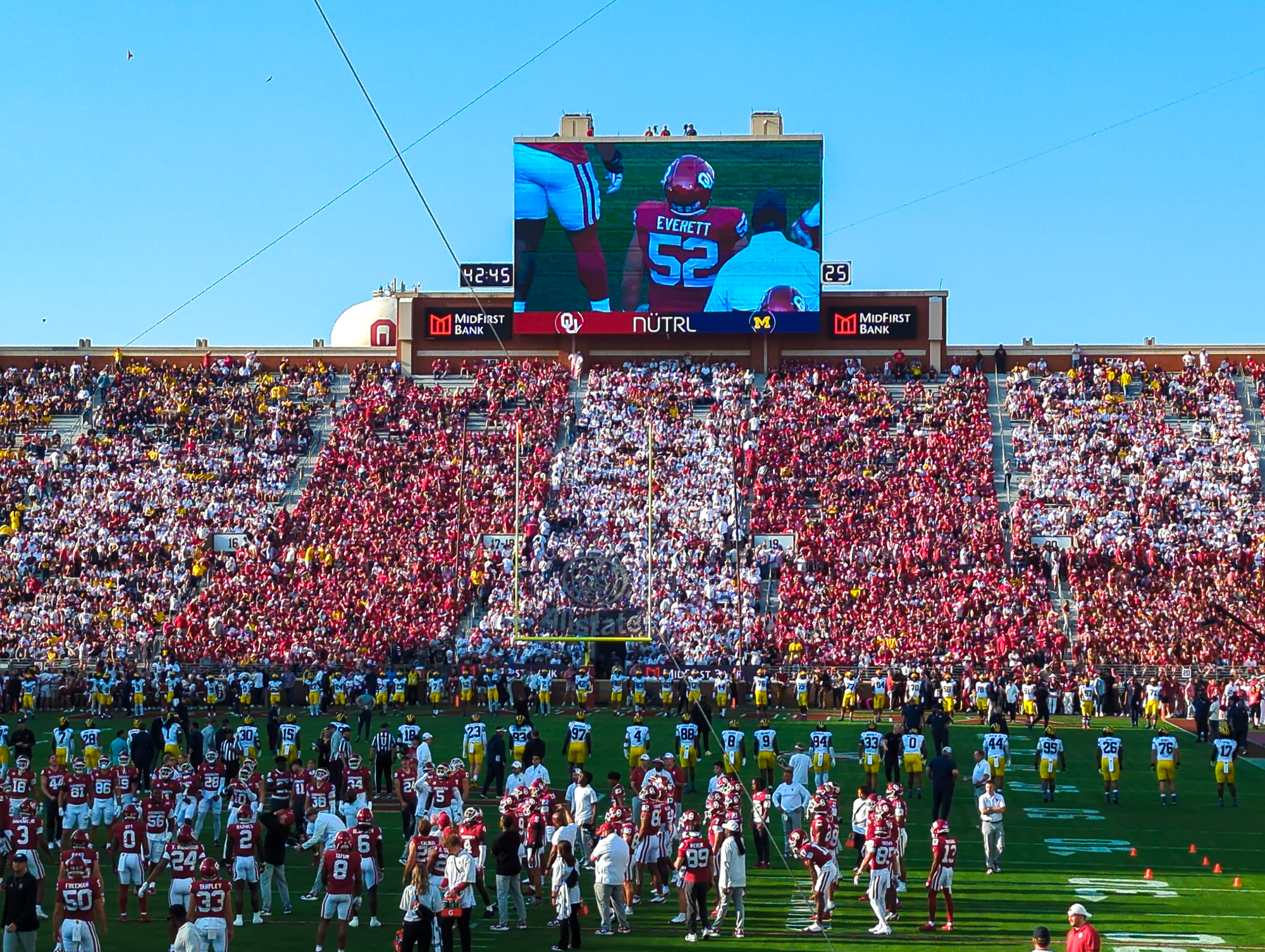 September 6th, 2025 was a day I had been looking forward to for almost 11 years after the announcement of the Michigan vs Oklahoma game in Norman back in 2014. I purchased seats in the south end zone for myself and Bill to go to the game. We were surrounded by a sea of crimson in our bright yellow shirts.
